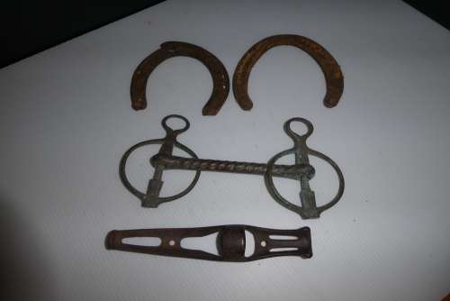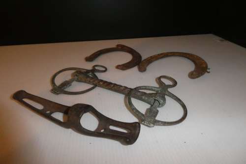 • Lot de fers à cheval, mort aux dents, support
